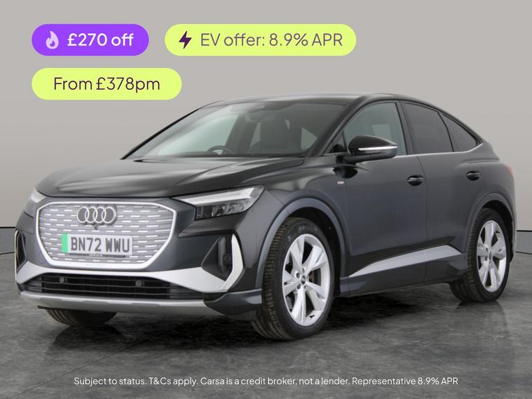 Experience the Audi Q4 E-tron Sportback in sleek black, featuring an upgraded sound system, MMI Navigation Plus, and luxurious heated seats. Stay safe and connected with Lane Departure Warning, Traffic Sign Recognition, and Bluetooth. Enjoy the style and visibility of LED headlights and daytime running lights. With smart driving modes, cruise control, and comprehensive sat nav, every journey is a pleasure. Comes with charging leads for effortless electric driving. 1 service recorded, last serviced on 10/10/2024 at 26, 978 miles. MOT to 25/09/2026. Visit our website for service history, online valuation, full vehicle specification plus multiple images. Certain features listed may be available via subscription packages at extra costs, please consult with Audi for details. This vehicle is VAT qualifying. Any feature/option specified here is from 3rd party data. We cannot guarantee the accuracy of any specification supplied by a 3rd party. We recommend that you physically check the specification of the vehicle on site prior to purchase. This information does not form part of the buying contract. Terms & Conditions apply. We have over 2, 000 cars available from our 10 national branches, check our website to see all our stock. Our Trustpilot rating is 4.4/5 with over 9, 000 reviews.
