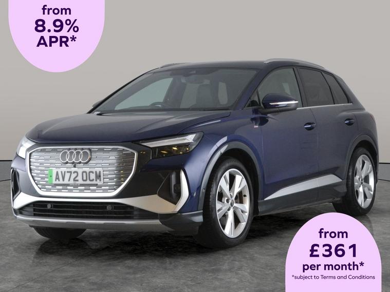 Elevate your drive with this blue Audi Q4 E-tron S Line, equipped with the sought-after Technology and Comfort & Sound Packages. Enjoy crystal-clear music with the upgraded sound system, stay connected through Apple CarPlay, and experience convenience with keyless entry. Youll love the futuristic head-up display, heated sports seats, and immersive MMI Navigation Plus. LED headlights, a reversing camera, and advanced lane departure warning add to your safety and comfort. The perfect electric SUV for those who want refinement and innovation. 2 services recorded, last serviced on 31/10/2025 at 47, 337 miles. MOT to 26/10/2026. Visit our website for service history, online valuation, full vehicle specification plus multiple images. Certain features listed may be available via subscription packages at extra costs, please consult with Audi for details. This vehicle is VAT qualifying. Any feature/option specified here is from 3rd party data. We cannot guarantee the accuracy of any specification supplied by a 3rd party. We recommend that you physically check the specification of the vehicle on site prior to purchase. This information does not form part of the buying contract. Terms & Conditions apply. We have over 2, 000 cars available from our 10 national branches, check our website to see all our stock. Our Trustpilot rating is 4.4/5 with over 9, 000 reviews.