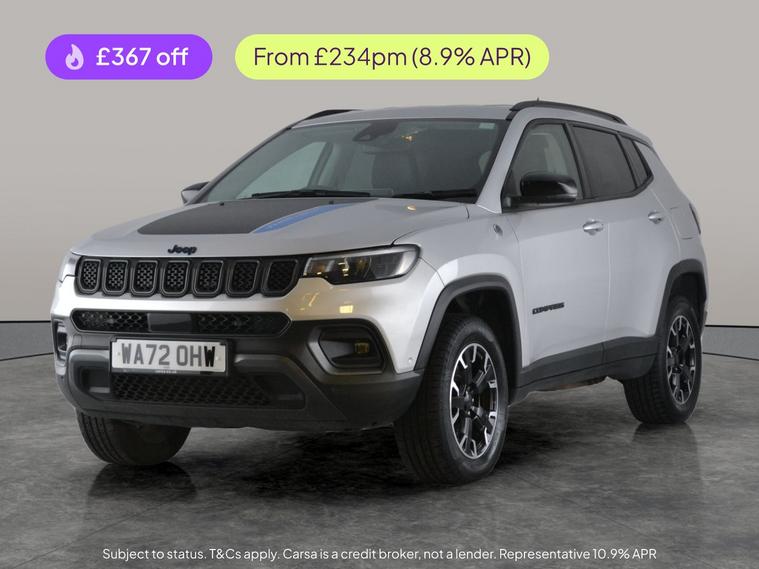 Tackle any adventure in this stunning grey Jeep Compass SUV with a versatile plug-in hybrid engine and smooth automatic transmission. Enjoy comfort whatever the weather with heated seats and a heated steering wheel. Stay effortlessly connected with Apple CarPlay and find your way with built-in Sat Nav. LED headlights light your path, while adaptive cruise control, park assist, and a reversing camera make every journey a breeze. Keyless entry, electric seats, and a reversible cargo mat add convenience, while blind spot assist ensures extra peace of mind. 4 services recorded, last serviced on 13/08/2025 at 33, 000 miles. MOT to 02/11/2026. Visit our website for service history, online valuation, full vehicle specification plus multiple images. This vehicle is VAT qualifying. Any feature/option specified here is from 3rd party data. We cannot guarantee the accuracy of any specification supplied by a 3rd party. We recommend that you physically check the specification of the vehicle on site prior to purchase. This information does not form part of the buying contract. Terms & Conditions apply. We have over 2, 000 cars available from our 10 national branches, check our website to see all our stock. Our Trustpilot rating is 4.4/5 with over 9, 000 reviews.