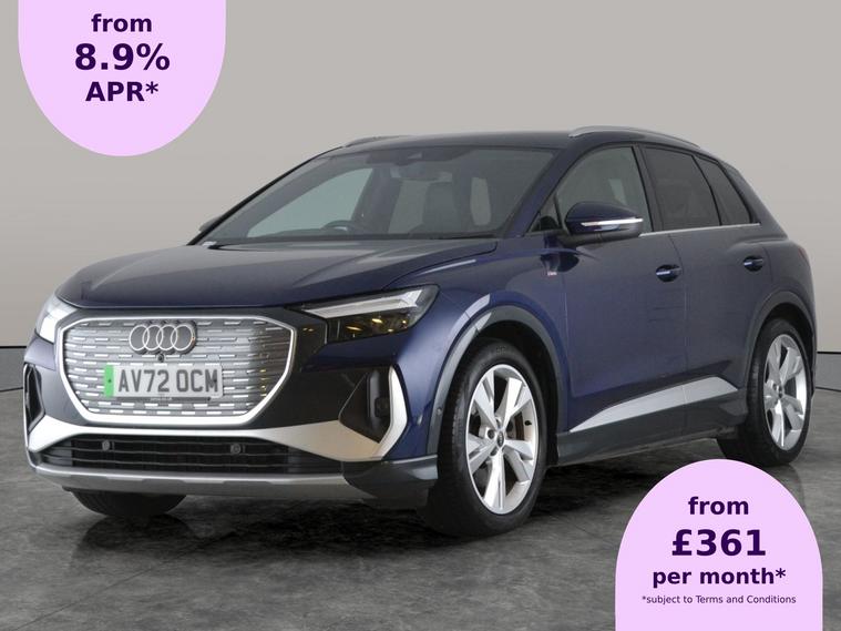 Elevate your drive with this blue Audi Q4 E-tron S Line, equipped with the sought-after Technology and Comfort & Sound Packages. Enjoy crystal-clear music with the upgraded sound system, stay connected through Apple CarPlay, and experience convenience with keyless entry. Youll love the futuristic head-up display, heated sports seats, and immersive MMI Navigation Plus. LED headlights, a reversing camera, and advanced lane departure warning add to your safety and comfort. The perfect electric SUV for those who want refinement and innovation. 2 services recorded, last serviced on 31/10/2025 at 47, 337 miles. MOT to 26/10/2026. Visit our website for service history, online valuation, full vehicle specification plus multiple images. Certain features listed may be available via subscription packages at extra costs, please consult with Audi for details. This vehicle is VAT qualifying. Any feature/option specified here is from 3rd party data. We cannot guarantee the accuracy of any specification supplied by a 3rd party. We recommend that you physically check the specification of the vehicle on site prior to purchase. This information does not form part of the buying contract. Terms & Conditions apply. We have over 2, 000 cars available from our 10 national branches, check our website to see all our stock. Our Trustpilot rating is 4.4/5 with over 9, 000 reviews.