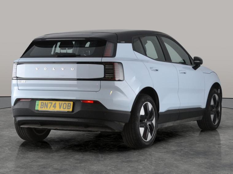 Experience the future of driving with this sleek blue Volvo EX30 electric SUV, featuring a luxurious Textile and Nordico Indigo interior. Enjoy top-tier comfort with heated seats and a heated steering wheel, while the premium Harman/Kardon sound system ensures every journey sounds superb. Stay confidently in control with adaptive cruise control, active lane assist, blind spot assist, and park assist. Navigate with ease using the built-in sat nav and Apple CarPlay, and let LED headlights light your way. Modern safety and style meet premium electric performance. MOT to 23/10/2027. Visit our website for service history, online valuation, full vehicle specification plus multiple images. This vehicle is VAT qualifying. Any feature/option specified here is from 3rd party data. We cannot guarantee the accuracy of any specification supplied by a 3rd party. We recommend that you physically check the specification of the vehicle on site prior to purchase. This information does not form part of the buying contract. Terms & Conditions apply. We have over 2, 000 cars available from our 10 national branches, check our website to see all our stock. Our Trustpilot rating is 4.4/5 with over 9, 000 reviews.
