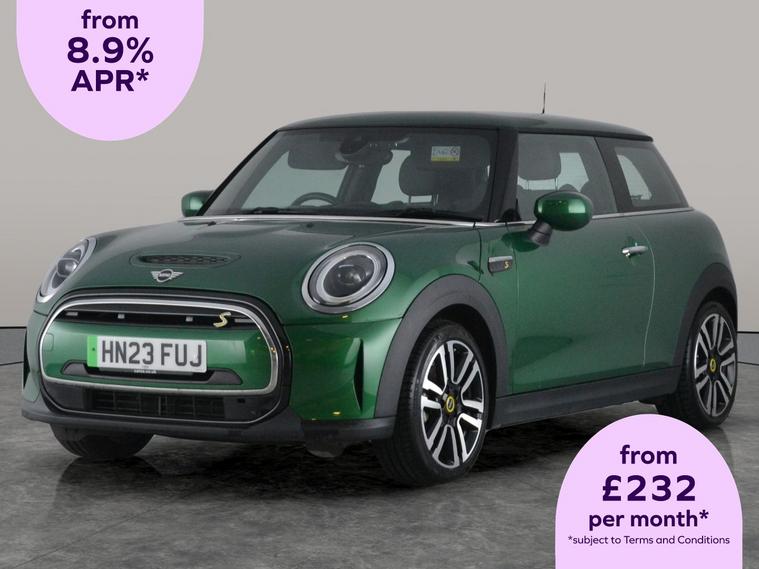Turn heads in this striking green Mini Electric Hatch Cooper SE, enhanced by stylish 17in Rail Spoke alloy wheels. Enjoy the comfort of heated half-leather seats, and breeze through every journey with keyless entry and Comfort Access. Stay connected with Apple CarPlay, navigation pack, and Bluetooth. Park with confidence using a reversing camera and illuminate the road ahead with sharp LED headlights. Experience the Minis signature go-kart feel with selectable driving modes and cruise control for relaxed motoring. 1 service recorded, last serviced on 06/08/2025 at 20, 719 miles. MOT to 07/07/2026. Visit our website for service history, online valuation, full vehicle specification plus multiple images. This vehicle is VAT qualifying. Any feature/option specified here is from 3rd party data. We cannot guarantee the accuracy of any specification supplied by a 3rd party. We recommend that you physically check the specification of the vehicle on site prior to purchase. This information does not form part of the buying contract. Terms & Conditions apply. We have over 2, 000 cars available from our 10 national branches, check our website to see all our stock. Our Trustpilot rating is 4.4/5 with over 9, 000 reviews.