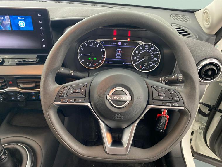 Step into the stylish white Nissan Juke SUV and enjoy advanced features like Apple CarPlay, a reversing camera, integrated Wifi, and Bluetooth connectivity. Stay safe with Intelligent Lane Intervention, Lane Departure Warning, Traffic Sign Recognition, and cruise control, making every journey more relaxed and secure. This Juke pairs sporty looks with clever technology, perfect for those seeking excitement and peace of mind on the road. MOT to 12/12/2027. Visit our website for service history, online valuation, full vehicle specification plus multiple images. This vehicle is VAT qualifying. Any feature/option specified here is from 3rd party data. We cannot guarantee the accuracy of any specification supplied by a 3rd party. We recommend that you physically check the specification of the vehicle on site prior to purchase. This information does not form part of the buying contract. Terms & Conditions apply. We have over 2, 000 cars available from our 10 national branches, check our website to see all our stock. Our Trustpilot rating is 4.4/5 with over 9, 000 reviews.