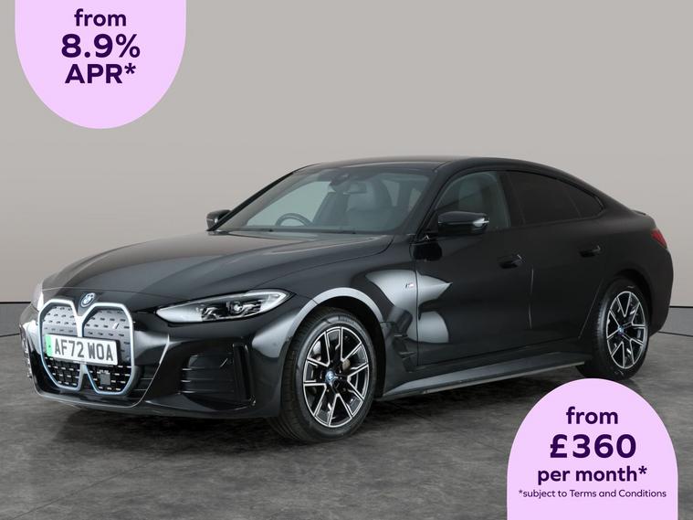 Experience the thrill of electric driving with this sleek black BMW i4 M Sport Gran Coupe. Enjoy the luxurious feel of Alcantara upholstery and added privacy with rear and sun protection glass. Stay comfortable with heated seats and let adaptive cruise control and Park Assist make every journey effortless. LED headlights provide clear illumination, while the reversing camera and Attentiveness Assistant add extra peace of mind. Connect seamlessly with the BMW Connected Package and charge with ease using the included leads. 2 services recorded, last serviced on 28/10/2025 at 31, 482 miles. MOT to 27/10/2026. Visit our website for service history, online valuation, full vehicle specification plus multiple images. Certain features listed may be available via subscription packages at extra costs, please consult with BMW for details. This vehicle is VAT qualifying. Any feature/option specified here is from 3rd party data. We cannot guarantee the accuracy of any specification supplied by a 3rd party. We recommend that you physically check the specification of the vehicle on site prior to purchase. This information does not form part of the buying contract. Terms & Conditions apply. We have over 2, 000 cars available from our 10 national branches, check our website to see all our stock. Our Trustpilot rating is 4.4/5 with over 9, 000 reviews.