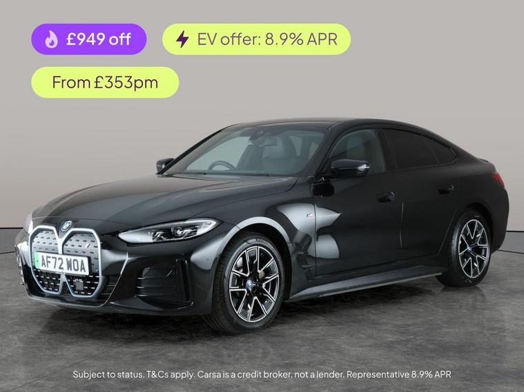 Experience the thrill of electric driving with this sleek black BMW i4 M Sport Gran Coupe. Enjoy the luxurious feel of Alcantara upholstery and added privacy with rear and sun protection glass. Stay comfortable with heated seats and let adaptive cruise control and Park Assist make every journey effortless. LED headlights provide clear illumination, while the reversing camera and Attentiveness Assistant add extra peace of mind. Connect seamlessly with the BMW Connected Package and charge with ease using the included leads. 2 services recorded, last serviced on 28/10/2025 at 31, 482 miles. MOT to 27/10/2026. Visit our website for service history, online valuation, full vehicle specification plus multiple images. Certain features listed may be available via subscription packages at extra costs, please consult with BMW for details. This vehicle is VAT qualifying. Any feature/option specified here is from 3rd party data. We cannot guarantee the accuracy of any specification supplied by a 3rd party. We recommend that you physically check the specification of the vehicle on site prior to purchase. This information does not form part of the buying contract. Terms & Conditions apply. We have over 2, 000 cars available from our 10 national branches, check our website to see all our stock. Our Trustpilot rating is 4.4/5 with over 9, 000 reviews.
