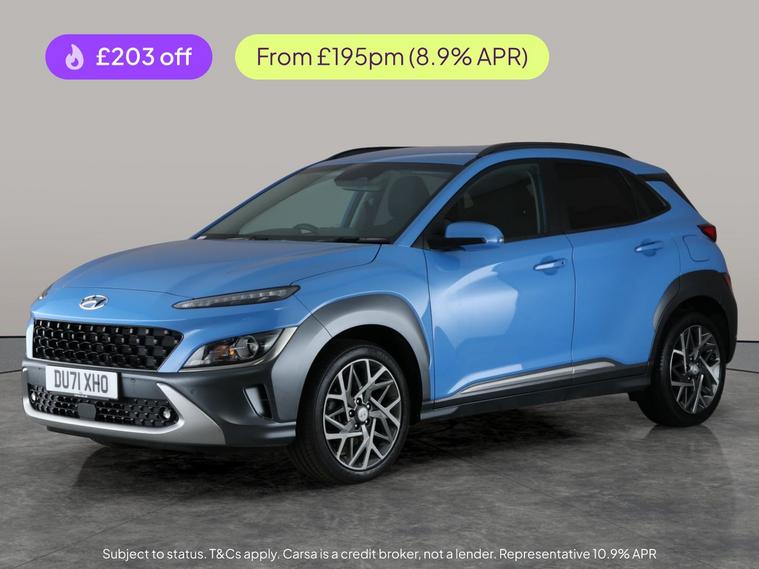 Experience the Hyundai Kona, a stylish blue SUV that stands out with its impressive features. Enjoy seamless connectivity with Apple CarPlay and Bluetooth, stay comfortable with heated seats and a heated steering wheel, and never miss a turn with integrated Sat Nav. Keyless entry adds convenience to every journey, while the reversing camera and lane departure warning system enhance safety. The Konas 18in alloy wheels give it a sporty look, and automatic climate control ensures a perfect cabin environment year-round. Test drive today and discover the joy of hybrid driving! 4 services recorded, last serviced on 06/11/2025 at 35, 705 miles. MOT to 29/09/2026. Visit our website for service history, online valuation, full vehicle specification plus multiple images. This vehicle is VAT qualifying. Any feature/option specified here is from 3rd party data. We cannot guarantee the accuracy of any specification supplied by a 3rd party. We recommend that you physically check the specification of the vehicle on site prior to purchase. This information does not form part of the buying contract. Terms & Conditions apply. We have over 2, 000 cars available from our 10 national branches, check our website to see all our stock. Our Trustpilot rating is 4.4/5 with over 9, 000 reviews.