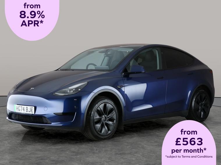 Experience the future of driving with this stunning blue Tesla Model Y. Enjoy the luxury of a panoramic roof, a sunroof for extra light, and heated seats to keep you comfortable all year round. Navigate easily with built-in sat nav, while keyless entry and a heated steering wheel add a touch of convenience. LED headlights and 19in alloy wheels give it plenty of style, and safety is enhanced by blind spot assist and a reversing camera. Stay connected with Bluetooth and in control with traffic sign recognition and air conditioning. MOT to 23/11/2027. Visit our website for service history, online valuation, full vehicle specification plus multiple images. This vehicle is VAT qualifying. Any feature/option specified here is from 3rd party data. We cannot guarantee the accuracy of any specification supplied by a 3rd party. We recommend that you physically check the specification of the vehicle on site prior to purchase. This information does not form part of the buying contract. Terms & Conditions apply. We have over 2, 000 cars available from our 10 national branches, check our website to see all our stock. Our Trustpilot rating is 4.4/5 with over 9, 000 reviews.