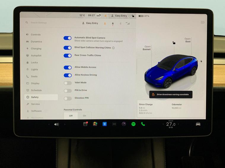 Experience the future of driving with this stunning blue Tesla Model Y. Enjoy the luxury of a panoramic roof, a sunroof for extra light, and heated seats to keep you comfortable all year round. Navigate easily with built-in sat nav, while keyless entry and a heated steering wheel add a touch of convenience. LED headlights and 19in alloy wheels give it plenty of style, and safety is enhanced by blind spot assist and a reversing camera. Stay connected with Bluetooth and in control with traffic sign recognition and air conditioning. MOT to 23/11/2027. Visit our website for service history, online valuation, full vehicle specification plus multiple images. This vehicle is VAT qualifying. Any feature/option specified here is from 3rd party data. We cannot guarantee the accuracy of any specification supplied by a 3rd party. We recommend that you physically check the specification of the vehicle on site prior to purchase. This information does not form part of the buying contract. Terms & Conditions apply. We have over 2, 000 cars available from our 10 national branches, check our website to see all our stock. Our Trustpilot rating is 4.4/5 with over 9, 000 reviews.