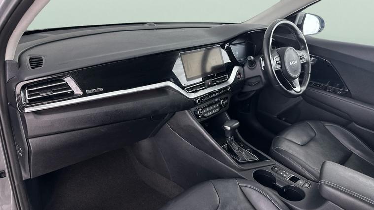 Discover the Kia Niro SUV, finished in sleek grey and packed with fantastic features. Enjoy the open road with a sunroof and find comfort in heated seats, a heated steering wheel, and memory function for the electric driver's seat. Stay safe with Blind Spot Assist and a Lane Departure Warning System. Effortless parking is made easy with a reversing camera. Navigate easily with built-in Sat Nav, and enjoy seamless connectivity with Bluetooth audio streaming. All riding on stylish 18in alloy wheels and illuminated by LED daytime running lights. 1 service recorded, last serviced on 24/07/2025 at 23, 774 miles. MOT to 28/06/2026. Visit our website for service history, online valuation, full vehicle specification plus multiple images. This vehicle is VAT qualifying. Any feature/option specified here is from 3rd party data. We cannot guarantee the accuracy of any specification supplied by a 3rd party. We recommend that you physically check the specification of the vehicle on site prior to purchase. This information does not form part of the buying contract. Terms & Conditions apply. We have over 2, 000 cars available from our 10 national branches, check our website to see all our stock. Our Trustpilot rating is 4.4/5 with over 9, 000 reviews.