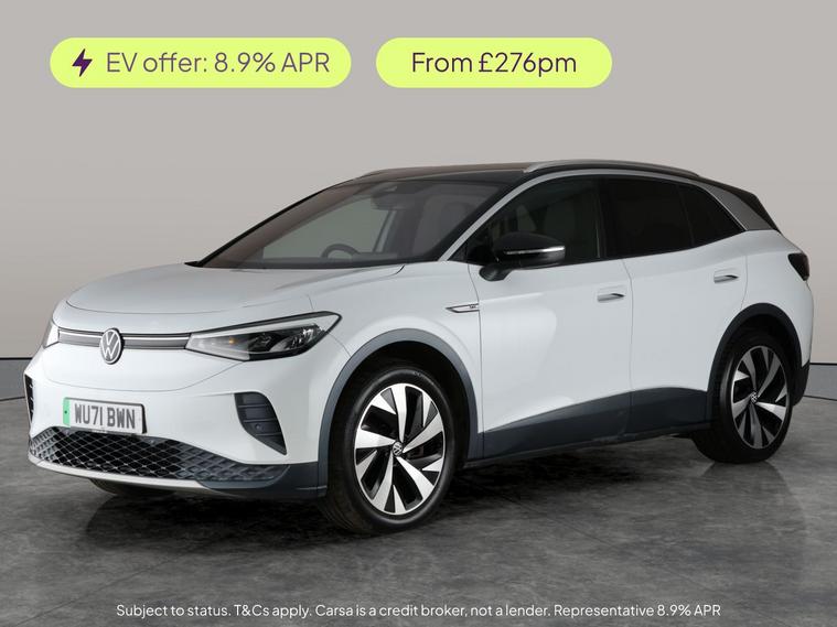 Experience the future of driving with this white Volkswagen ID.4. Enjoy added comfort with heated seats and find your way easily using the built-in sat nav. Adaptive cruise control makes long journeys a breeze, and the reversing camera ensures parking is effortless. Keyless start adds convenience, while air conditioning and Bluetooth connectivity keep every journey pleasant. Make every drive stylish and smart in this well-equipped electric SUV. 2 services recorded, last serviced on 08/11/2025 at 53, 882 miles. MOT to 12/09/2026. Visit our website for service history, online valuation, full vehicle specification plus multiple images. This vehicle is VAT qualifying. Any feature/option specified here is from 3rd party data. We cannot guarantee the accuracy of any specification supplied by a 3rd party. We recommend that you physically check the specification of the vehicle on site prior to purchase. This information does not form part of the buying contract. Terms & Conditions apply. We have over 2, 000 cars available from our 10 national branches, check our website to see all our stock. Our Trustpilot rating is 4.4/5 with over 9, 000 reviews.