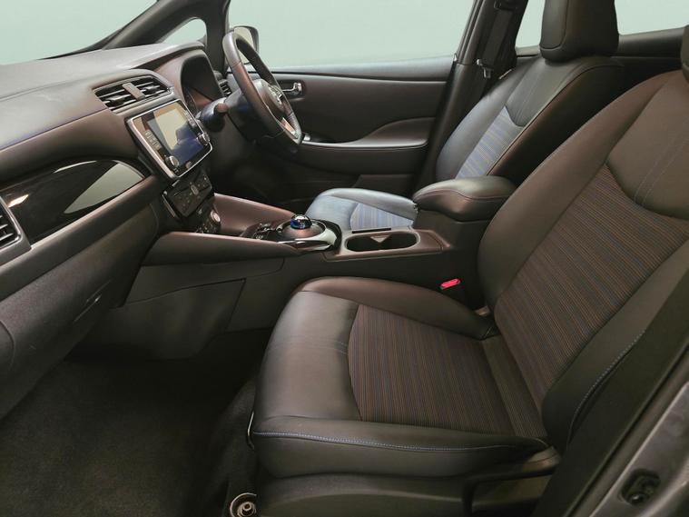 Experience the future of driving with this grey Nissan Leaf. Enjoy the comfort of heated seats and a heat pack, while staying fully aware with a surround view, 360-degree camera and around view monitor. Seamlessly connect with Apple CarPlay, sat nav and Bluetooth. Intelligent lane intervention, blind spot assist and lane departure warning provide added peace of mind. Cruise control, keyless start, air conditioning, plus front and rear parking sensors complete this outstanding package. 3 services recorded, last serviced on 30/05/2025 at 12, 279 miles. MOT to 10/04/2026. Visit our website for service history, online valuation, full vehicle specification plus multiple images. This vehicle is VAT qualifying. Any feature/option specified here is from 3rd party data. We cannot guarantee the accuracy of any specification supplied by a 3rd party. We recommend that you physically check the specification of the vehicle on site prior to purchase. This information does not form part of the buying contract. Terms & Conditions apply. We have over 2, 000 cars available from our 10 national branches, check our website to see all our stock. Our Trustpilot rating is 4.4/5 with over 9, 000 reviews.