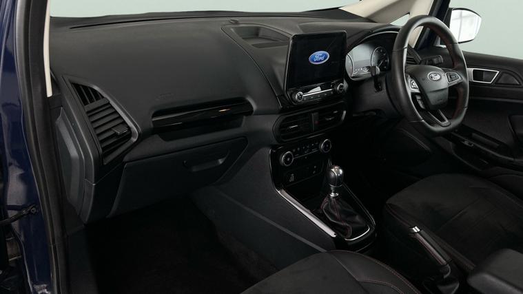 Step into the stylish blue Ford Ecosport ST-Line and enjoy a dynamic drive with a punchy petrol engine and manual transmission. Enjoy the convenience of a reversing camera and stay connected with Ford SYNC3 infotainment. Cruise control and Traffic Sign Recognition make every journey easier, while the Ford MyKey system offers extra peace of mind. This SUV is a perfect blend of fun, safety, and technology. 1 service recorded, last serviced on 24/07/2025 at 13, 671 miles. MOT to 21/04/2026. Visit our website for service history, online valuation, full vehicle specification plus multiple images. Any feature/option specified here is from 3rd party data. We cannot guarantee the accuracy of any specification supplied by a 3rd party. We recommend that you physically check the specification of the vehicle on site prior to purchase. This information does not form part of the buying contract. Terms & Conditions apply. We have over 2, 000 cars available from our 10 national branches, check our website to see all our stock. Our Trustpilot rating is 4.4/5 with over 9, 000 reviews.