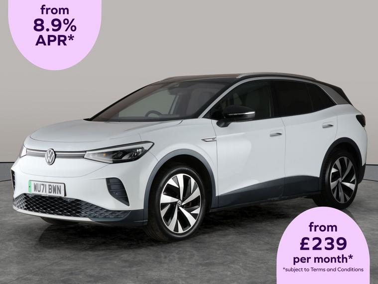Experience the future of driving with this white Volkswagen ID.4. Enjoy added comfort with heated seats and find your way easily using the built-in sat nav. Adaptive cruise control makes long journeys a breeze, and the reversing camera ensures parking is effortless. Keyless start adds convenience, while air conditioning and Bluetooth connectivity keep every journey pleasant. Make every drive stylish and smart in this well-equipped electric SUV. 2 services recorded, last serviced on 08/11/2025 at 53, 882 miles. MOT to 12/09/2026. Visit our website for service history, online valuation, full vehicle specification plus multiple images. This vehicle is VAT qualifying. Any feature/option specified here is from 3rd party data. We cannot guarantee the accuracy of any specification supplied by a 3rd party. We recommend that you physically check the specification of the vehicle on site prior to purchase. This information does not form part of the buying contract. Terms & Conditions apply. We have over 2, 000 cars available from our 10 national branches, check our website to see all our stock. Our Trustpilot rating is 4.4/5 with over 9, 000 reviews.