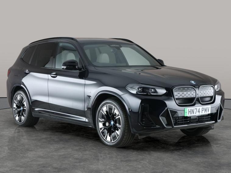 Experience the BMW iX3 M Sport Pro, a stylish electric SUV finished in sleek black. Enjoy luxury features like a panoramic roof, gesture control, and upgraded Harman/Kardon sound system. The head-up display and adaptive cruise control make every drive relaxing, while LED headlights and surround view enhance safety. With parking assistant plus, keyless entry, Apple CarPlay, and active lane assist, this BMW seamlessly blends innovation, comfort, and cutting-edge technology for your next adventure. MOT to 11/10/2027. Visit our website for service history, online valuation, full vehicle specification plus multiple images. Certain features listed may be available via subscription packages at extra costs, please consult with BMW for details. This vehicle is VAT qualifying. Any feature/option specified here is from 3rd party data. We cannot guarantee the accuracy of any specification supplied by a 3rd party. We recommend that you physically check the specification of the vehicle on site prior to purchase. This information does not form part of the buying contract. Terms & Conditions apply. We have over 2, 000 cars available from our 10 national branches, check our website to see all our stock. Our Trustpilot rating is 4.4/5 with over 9, 000 reviews.