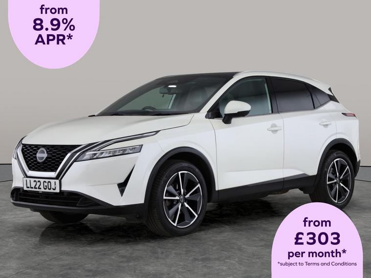 Experience style and innovation with this white Nissan Qashqai. Enjoy premium features like a panoramic glass roof, heated seats and steering wheel, and a cutting-edge head-up display. Stay connected with Apple CarPlay and navigate effortlessly with built-in sat nav. Manoeuvring is a breeze thanks to the surround view, 360-degree camera, and reversing camera. Safety is paramount with intelligent lane intervention, blind spot assist, and lane departure warning. Modern LED headlights ensure clear visibility on every journey. This automatic, petrol hybrid SUV blends practicality and luxury for an unbeatable drive. 1 service recorded, last serviced on 24/07/2025 at 21, 562 miles. MOT to 21/06/2026. Visit our website for service history, online valuation, full vehicle specification plus multiple images. Any feature/option specified here is from 3rd party data. We cannot guarantee the accuracy of any specification supplied by a 3rd party. We recommend that you physically check the specification of the vehicle on site prior to purchase. This information does not form part of the buying contract. Terms & Conditions apply. We have over 2, 000 cars available from our 10 national branches, check our website to see all our stock. Our Trustpilot rating is 4.4/5 with over 9, 000 reviews.