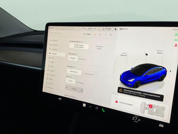 Experience pure electric power with this blue Tesla Model 3 Performance. Standout features include a panoramic roof and sunroof for an airy cabin feel, plus heated leather seats and a heated steering wheel for added comfort. Enjoy effortless journeys with adaptive cruise control, active lane assist, and blind spot assist. Parking is a breeze with park assist and a reversing camera. Keyless entry, LED headlights, sat nav, WiFi, and smart garage door access complete this innovative package. Enjoy the future of driving today. 1 service recorded, last serviced on 07/11/2025 at 18, 754 miles. MOT to 02/09/2026. Visit our website for service history, online valuation, full vehicle specification plus multiple images. This vehicle is VAT qualifying. Any feature/option specified here is from 3rd party data. We cannot guarantee the accuracy of any specification supplied by a 3rd party. We recommend that you physically check the specification of the vehicle on site prior to purchase. This information does not form part of the buying contract. Terms & Conditions apply. We have over 2, 000 cars available from our 10 national branches, check our website to see all our stock. Our Trustpilot rating is 4.4/5 with over 9, 000 reviews.