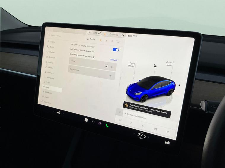 Experience pure electric power with this blue Tesla Model 3 Performance. Standout features include a panoramic roof and sunroof for an airy cabin feel, plus heated leather seats and a heated steering wheel for added comfort. Enjoy effortless journeys with adaptive cruise control, active lane assist, and blind spot assist. Parking is a breeze with park assist and a reversing camera. Keyless entry, LED headlights, sat nav, WiFi, and smart garage door access complete this innovative package. Enjoy the future of driving today. 1 service recorded, last serviced on 07/11/2025 at 18, 754 miles. MOT to 02/09/2026. Visit our website for service history, online valuation, full vehicle specification plus multiple images. This vehicle is VAT qualifying. Any feature/option specified here is from 3rd party data. We cannot guarantee the accuracy of any specification supplied by a 3rd party. We recommend that you physically check the specification of the vehicle on site prior to purchase. This information does not form part of the buying contract. Terms & Conditions apply. We have over 2, 000 cars available from our 10 national branches, check our website to see all our stock. Our Trustpilot rating is 4.4/5 with over 9, 000 reviews.