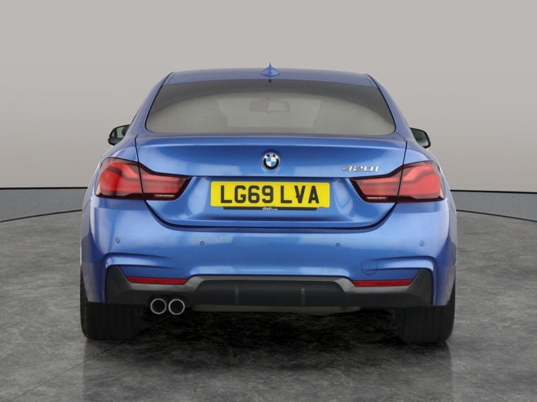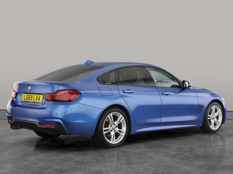 Experience luxury and innovation with this blue BMW 4 Series Gran Coupe. Enjoy plush Dakota leather upholstery, a leather-trimmed BMW Individual instrument panel, and a heated steering wheel. Stay connected with enhanced Bluetooth, wireless charging, and BMW Professional Sat Nav. Park Assist and front/rear parking sensors make parking effortless. Relax with heated electric seats and sun protection glass, while LED headlights and 18in 400M style wheels add sportiness and style. Experience true driving pleasure with BMW Sport Automatic transmission and paddle shift. 3 services recorded, last serviced on 08/07/2025 at 23, 342 miles. MOT to 27/06/2026. Visit our website for service history, online valuation, full vehicle specification plus multiple images. Certain features listed may be available via subscription packages at extra costs, please consult with BMW for details. Any feature/option specified here is from 3rd party data. We cannot guarantee the accuracy of any specification supplied by a 3rd party. We recommend that you physically check the specification of the vehicle on site prior to purchase. This information does not form part of the buying contract. Terms & Conditions apply. We have over 2, 000 cars available from our 10 national branches, check our website to see all our stock. Our Trustpilot rating is 4.4/5 with over 9, 000 reviews.