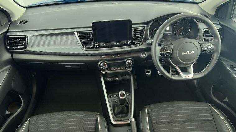 Experience the style and thrill of the Kia Rio GT-Line S Hatchback in striking blue. Enjoy the comfort of heated seats and a heated steering wheel, while the reversing camera and blind spot assist make every drive effortless. Stay connected with Bluetooth and never lose your way with built-in sat nav. Cruise control and air conditioning add to your driving pleasure, all enhanced by sporty 17in alloy wheels. This petrol hybrid offers smart features and head-turning looks in one sleek package. 5 services recorded, last serviced on 19/08/2023 at 43, 078 miles. MOT to 02/10/2026. Visit our website for service history, online valuation, full vehicle specification plus multiple images. Any feature/option specified here is from 3rd party data. We cannot guarantee the accuracy of any specification supplied by a 3rd party. We recommend that you physically check the specification of the vehicle on site prior to purchase. This information does not form part of the buying contract. Terms & Conditions apply. We have over 2, 000 cars available from our 10 national branches, check our website to see all our stock. Our Trustpilot rating is 4.4/5 with over 9, 000 reviews.