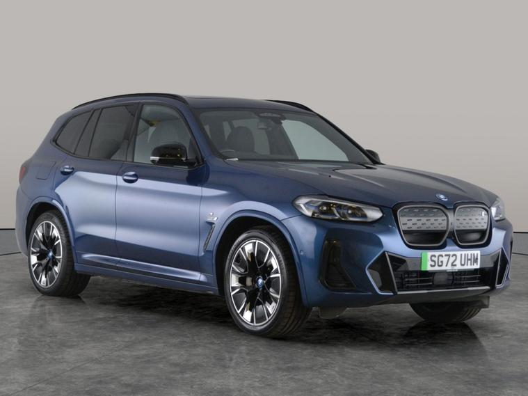 Discover the BMW iX3 M Sport a stunning blue SUV packed with premium features. Enjoy crystal-clear visibility with Laserlights and soak up the drive through the panoramic roof and sunroof. Inside, the Harman/Kardon sound system and Apple CarPlay make every journey a pleasure, while gesture control and a head-up display keep you in command. Stay safe with Driving Assistant, Active Lane Assist, and Parking Assistant Plus, complemented by Surround View and a reversing camera. Keyless entry adds ease to every trip. Experience electrifying comfort and innovation in this sophisticated BMW. 2 services recorded, last serviced on 13/11/2025 at 63, 512 miles. MOT to 18/09/2026. Visit our website for service history, online valuation, full vehicle specification plus multiple images. Certain features listed may be available via subscription packages at extra costs, please consult with BMW for details. Any feature/option specified here is from 3rd party data. We cannot guarantee the accuracy of any specification supplied by a 3rd party. We recommend that you physically check the specification of the vehicle on site prior to purchase. This information does not form part of the buying contract. Terms & Conditions apply. We have over 2, 000 cars available from our 10 national branches, check our website to see all our stock. Our Trustpilot rating is 4.4/5 with over 9, 000 reviews.
