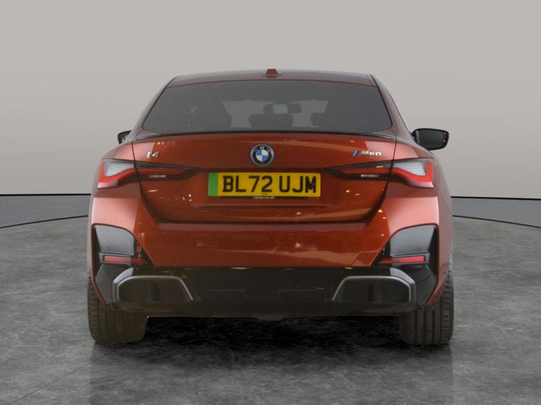 Experience electrifying performance with the BMW i4 Gran Coupe. Enjoy the comfort of Vernasca Leather seats and a heated steering wheel, perfect for those chilly mornings. This striking orange electric hatchback features adaptive cruise control, a head-up display, and a premium Harman/Kardon sound system with Apple CarPlay. Park Assist, LED headlights, keyless entry, and a reversing camera make city driving effortless. Adaptive M Sport suspension delivers a refined, sporty ride, and built-in sat nav keeps you on the right track. 1 service recorded, last serviced on 02/01/2025 at 27, 710 miles. MOT to 13/12/2025. Visit our website for service history, online valuation, full vehicle specification plus multiple images. Certain features listed may be available via subscription packages at extra costs, please consult with BMW for details. This vehicle is VAT qualifying. Any feature/option specified here is from 3rd party data. We cannot guarantee the accuracy of any specification supplied by a 3rd party. We recommend that you physically check the specification of the vehicle on site prior to purchase. This information does not form part of the buying contract. Terms & Conditions apply. We have over 2, 000 cars available from our 10 national branches, check our website to see all our stock. Our Trustpilot rating is 4.4/5 with over 9, 000 reviews.