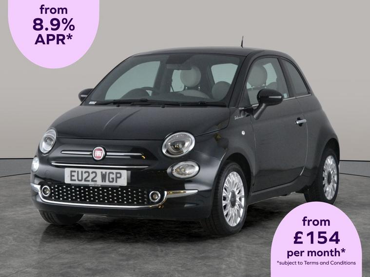 Discover the stylish Fiat 500 Dolcevita Hatchback in sleek black, featuring a chic white and black interior with black ambience. Enjoy open-air drives with the sunroof and seamless connectivity via Apple CarPlay and Bluetooth audio streaming. Stay comfortable all year round with climate control and air conditioning, while the 15in alloy wheels add a sporty touch. Half leather seats and cruise control round off this compelling package, making every journey a pleasure. 2 services recorded, last serviced on 07/11/2025 at 11, 238 miles. MOT to 28/04/2026. Visit our website for service history, online valuation, full vehicle specification plus multiple images. This vehicle is VAT qualifying. Any feature/option specified here is from 3rd party data. We cannot guarantee the accuracy of any specification supplied by a 3rd party. We recommend that you physically check the specification of the vehicle on site prior to purchase. This information does not form part of the buying contract. Terms & Conditions apply. We have over 2, 000 cars available from our 10 national branches, check our website to see all our stock. Our Trustpilot rating is 4.4/5 with over 9, 000 reviews.