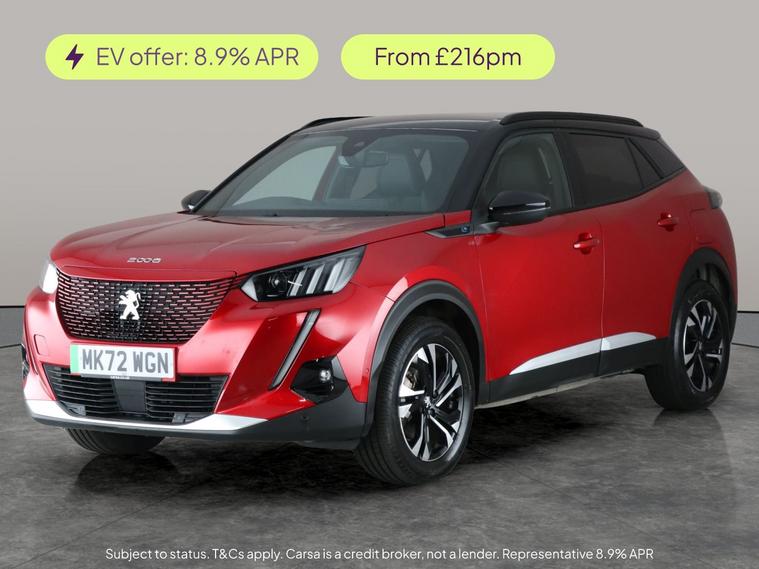 Experience the stylish red Peugeot E-2008 GT electric SUV, boasting a fantastic range of features. Enjoy heated half-leather seats, a head-up display, and a digital instrument cluster for a modern feel. Drive with confidence using Active Lane Assist, Blind Spot Assist, traffic sign recognition, and a high-definition reversing camera. Effortlessly stay connected with Apple CarPlay, Bluetooth audio streaming, and a wireless charger. LED headlights and built-in sat nav complete this brilliant package. 2 services recorded, last serviced on 13/11/2025 at 21, 417 miles. MOT to 30/10/2026. Visit our website for service history, online valuation, full vehicle specification plus multiple images. This vehicle is VAT qualifying. Any feature/option specified here is from 3rd party data. We cannot guarantee the accuracy of any specification supplied by a 3rd party. We recommend that you physically check the specification of the vehicle on site prior to purchase. This information does not form part of the buying contract. Terms & Conditions apply. We have over 2, 000 cars available from our 10 national branches, check our website to see all our stock. Our Trustpilot rating is 4.4/5 with over 9, 000 reviews.