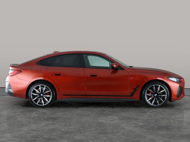 Experience the thrill of the BMW i4 M Sport Gran Coupe in stunning orange, featuring the M Sport Pro Package for enhanced styling. Enjoy immersive driving with a Harman/Kardon sound system, Alcantara trim, and heated steering wheel. Tech Pack and Comfort Pack provide advanced convenience, while 19in M Light Y-Spoke alloys add striking appeal. Stay seamlessly connected with wireless charging and the BMW Connected Package Professional. Drive and park with confidence thanks to Adaptive Cruise Control, Park Assist, a reversing camera, and LED headlights. 1 service recorded, last serviced on 10/01/2025 at 16, 023 miles. MOT to 15/11/2026. Visit our website for service history, online valuation, full vehicle specification plus multiple images. Certain features listed may be available via subscription packages at extra costs, please consult with BMW for details. This vehicle is VAT qualifying. Any feature/option specified here is from 3rd party data. We cannot guarantee the accuracy of any specification supplied by a 3rd party. We recommend that you physically check the specification of the vehicle on site prior to purchase. This information does not form part of the buying contract. Terms & Conditions apply. We have over 2, 000 cars available from our 10 national branches, check our website to see all our stock. Our Trustpilot rating is 4.4/5 with over 9, 000 reviews.