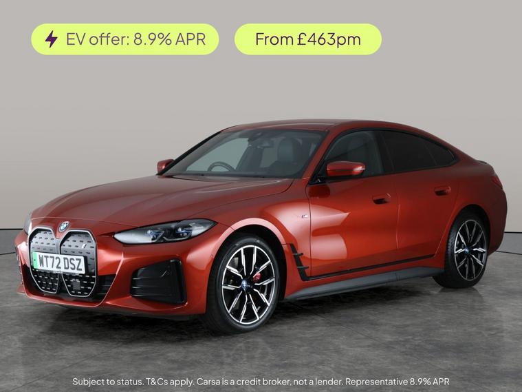 Experience the thrill of the BMW i4 M Sport Gran Coupe in stunning orange, featuring the M Sport Pro Package for enhanced styling. Enjoy immersive driving with a Harman/Kardon sound system, Alcantara trim, and heated steering wheel. Tech Pack and Comfort Pack provide advanced convenience, while 19in M Light Y-Spoke alloys add striking appeal. Stay seamlessly connected with wireless charging and the BMW Connected Package Professional. Drive and park with confidence thanks to Adaptive Cruise Control, Park Assist, a reversing camera, and LED headlights. 1 service recorded, last serviced on 10/01/2025 at 16, 023 miles. MOT to 15/11/2026. Visit our website for service history, online valuation, full vehicle specification plus multiple images. Certain features listed may be available via subscription packages at extra costs, please consult with BMW for details. This vehicle is VAT qualifying. Any feature/option specified here is from 3rd party data. We cannot guarantee the accuracy of any specification supplied by a 3rd party. We recommend that you physically check the specification of the vehicle on site prior to purchase. This information does not form part of the buying contract. Terms & Conditions apply. We have over 2, 000 cars available from our 10 national branches, check our website to see all our stock. Our Trustpilot rating is 4.4/5 with over 9, 000 reviews.