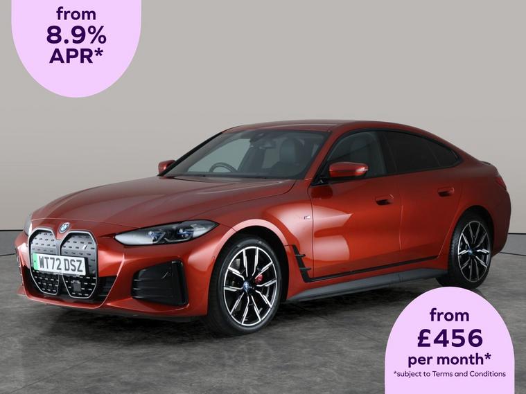 Experience the thrill of the BMW i4 M Sport Gran Coupe in stunning orange, featuring the M Sport Pro Package for enhanced styling. Enjoy immersive driving with a Harman/Kardon sound system, Alcantara trim, and heated steering wheel. Tech Pack and Comfort Pack provide advanced convenience, while 19in M Light Y-Spoke alloys add striking appeal. Stay seamlessly connected with wireless charging and the BMW Connected Package Professional. Drive and park with confidence thanks to Adaptive Cruise Control, Park Assist, a reversing camera, and LED headlights. 1 service recorded, last serviced on 10/01/2025 at 16, 023 miles. MOT to 15/11/2026. Visit our website for service history, online valuation, full vehicle specification plus multiple images. Certain features listed may be available via subscription packages at extra costs, please consult with BMW for details. This vehicle is VAT qualifying. Any feature/option specified here is from 3rd party data. We cannot guarantee the accuracy of any specification supplied by a 3rd party. We recommend that you physically check the specification of the vehicle on site prior to purchase. This information does not form part of the buying contract. Terms & Conditions apply. We have over 2, 000 cars available from our 10 national branches, check our website to see all our stock. Our Trustpilot rating is 4.4/5 with over 9, 000 reviews.