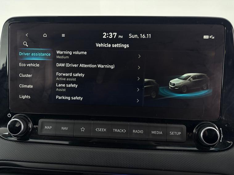 Experience the Hyundai Kona Premium in sleek grey, blending petrol hybrid efficiency with smooth automatic driving. Enjoy top features like adaptive cruise control, heated seats, and a heated steering wheel for ultimate comfort. Stay connected with Apple CarPlay, wireless charging, and Bluetooth audio streaming. Navigate with ease using the built-in sat nav, reversing camera, and front and rear parking sensors. Keyless entry and digital displays add convenience, while advanced safety systems keep your drive worry-free. 1 service recorded, last serviced on 16/11/2025 at 35, 418 miles. MOT to 16/12/2025. Visit our website for service history, online valuation, full vehicle specification plus multiple images. This vehicle is VAT qualifying. Any feature/option specified here is from 3rd party data. We cannot guarantee the accuracy of any specification supplied by a 3rd party. We recommend that you physically check the specification of the vehicle on site prior to purchase. This information does not form part of the buying contract. Terms & Conditions apply. We have over 2, 000 cars available from our 10 national branches, check our website to see all our stock. Our Trustpilot rating is 4.4/5 with over 9, 000 reviews.