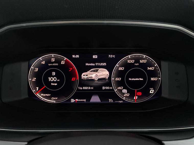 Discover this sleek grey Seat Leon Estate, packed with premium features. Enjoy the comfort of three zone climate control, the convenience of a wireless charger, and immersive connectivity with Apple CarPlay and onboard wifi. Stay safe with active lane assist, lane departure warning, and advanced park assist. LED headlights light the way, while sporty black roof rails add style and practicality. Experience the driving modes for a personalised feel, and navigate with ease using the built-in sat nav. Test drive it today! 3 services recorded, last serviced on 21/10/2025 at 47, 752 miles. MOT to 24/11/2026. Visit our website for service history, online valuation, full vehicle specification plus multiple images. This vehicle is VAT qualifying. Any feature/option specified here is from 3rd party data. We cannot guarantee the accuracy of any specification supplied by a 3rd party. We recommend that you physically check the specification of the vehicle on site prior to purchase. This information does not form part of the buying contract. Terms & Conditions apply. We have over 2, 000 cars available from our 10 national branches, check our website to see all our stock. Our Trustpilot rating is 4.4/5 with over 9, 000 reviews.