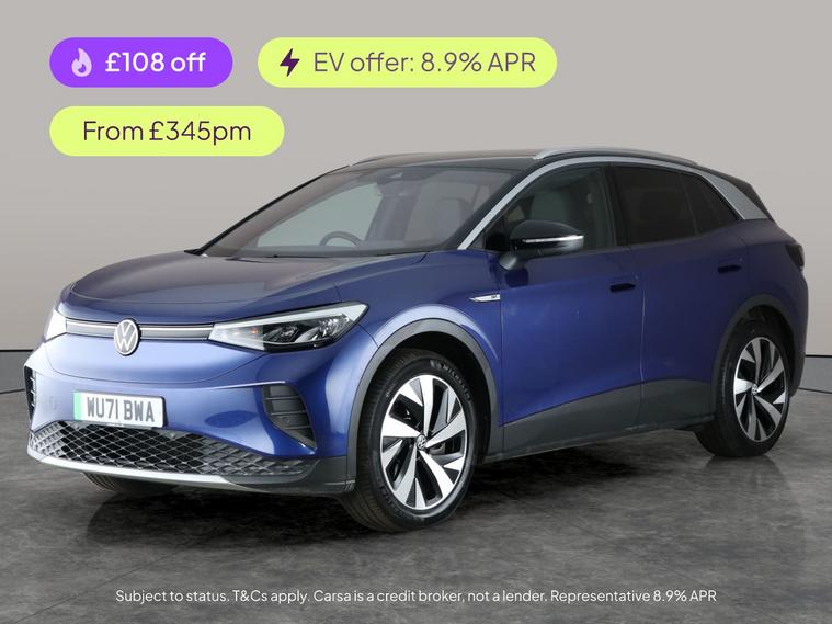 Experience the future of driving with this Volkswagen ID.4a standout electric SUV finished in stunning blue. Enjoy premium comfort with heated Alcantara seats and a host of tech features, including adaptive cruise control, an intuitive sat nav, and a reversing camera for hassle-free manoeuvring. Stay seamlessly connected with Apple CarPlay, Bluetooth audio streaming, and Car-Net App-Connect. LED headlights and the Assistance Pack enhance both style and safety, making every journey a pleasure. 2 services recorded, last serviced on 10/09/2025 at 22, 537 miles. MOT to 12/09/2026. Visit our website for service history, online valuation, full vehicle specification plus multiple images. This vehicle is VAT qualifying. Any feature/option specified here is from 3rd party data. We cannot guarantee the accuracy of any specification supplied by a 3rd party. We recommend that you physically check the specification of the vehicle on site prior to purchase. This information does not form part of the buying contract. Terms & Conditions apply. We have over 2, 000 cars available from our 10 national branches, check our website to see all our stock. Our Trustpilot rating is 4.4/5 with over 9, 000 reviews.
