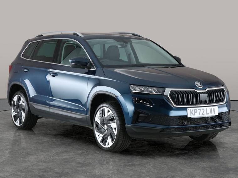 Experience comfort and style with this blue Skoda Karoq, featuring a stunning panoramic sunroof to brighten every journey. Sit back in heated leather seats, enjoy seamless connectivity with Apple CarPlay and SmartLink, and navigate with ease using built-in sat nav. Keyless entry adds convenience, while LED headlights and a reversing camera bring peace of mind. Stay cosy with a heated steering wheel and enjoy streaming your favourite music with Bluetooth audio. This automatic SUV is ready for your next adventure. 1 service recorded, last serviced on 29/01/2025 at 7, 568 miles. MOT to 25/01/2026. Visit our website for service history, online valuation, full vehicle specification plus multiple images. Any feature/option specified here is from 3rd party data. We cannot guarantee the accuracy of any specification supplied by a 3rd party. We recommend that you physically check the specification of the vehicle on site prior to purchase. This information does not form part of the buying contract. Terms & Conditions apply. We have over 2, 000 cars available from our 10 national branches, check our website to see all our stock. Our Trustpilot rating is 4.4/5 with over 9, 000 reviews.