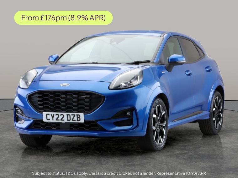 Discover the stylish blue Ford Puma Hybrid in the sporty ST-Line X trim, offering the best blend of dynamic looks and efficiency. Enjoy seamless journeys with built-in Sat Nav and the advanced Ford SYNC infotainment system. Stay safe with features like Lane Departure Warning, while LED Daytime Running Lights add both flair and visibility. Perfect for drivers seeking comfort, safety, and smart technology all in one eye-catching SUV. 1 service recorded, last serviced on 04/08/2025 at 31, 231 miles. MOT to 12/05/2026. Visit our website for service history, online valuation, full vehicle specification plus multiple images. Any feature/option specified here is from 3rd party data. We cannot guarantee the accuracy of any specification supplied by a 3rd party. We recommend that you physically check the specification of the vehicle on site prior to purchase. This information does not form part of the buying contract. Terms & Conditions apply. We have over 2, 000 cars available from our 10 national branches, check our website to see all our stock. Our Trustpilot rating is 4.4/5 with over 9, 000 reviews.