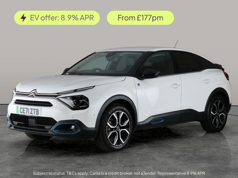 Experience the superb comfort of this white Citron e-C4 electric hatchback, featuring luxurious heated seats and a heated steering wheel for those chilly mornings. Enjoy advanced tech like a Head-Up Display, keyless entry, LED headlights, and blind spot assist for extra safety. Parking is simple with a reversing camera, while dual-zone digital climate control ensures everyone travels in comfort. Stay connected on the go with Bluetooth and included charging leads. Embrace the future of driving in style and comfort. 3 services recorded, last serviced on 03/10/2025 at 31, 264 miles. MOT to 10/07/2026. Visit our website for service history, online valuation, full vehicle specification plus multiple images. This vehicle is VAT qualifying. Any feature/option specified here is from 3rd party data. We cannot guarantee the accuracy of any specification supplied by a 3rd party. We recommend that you physically check the specification of the vehicle on site prior to purchase. This information does not form part of the buying contract. Terms & Conditions apply. We have over 2, 000 cars available from our 10 national branches, check our website to see all our stock. Our Trustpilot rating is 4.4/5 with over 9, 000 reviews.