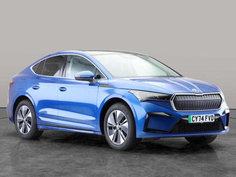Experience electric driving with this stylish blue Skoda Enyaq Coupe. Enjoy panoramic views through the expansive sunroof while relaxing in heated, fully electric memory seats. Stay connected with Apple CarPlay and a wireless charger, and drive confidently with Adaptive Cruise Control, Blind Spot Assist, and a reversing camera. Effortless keyless entry adds convenience, and built-in sat nav ensures youll always find your way. Discover comfort, technology, and space in this impressive Skoda Enyaq. MOT to 15/01/2028. Visit our website for service history, online valuation, full vehicle specification plus multiple images. This vehicle is VAT qualifying. Any feature/option specified here is from 3rd party data. We cannot guarantee the accuracy of any specification supplied by a 3rd party. We recommend that you physically check the specification of the vehicle on site prior to purchase. This information does not form part of the buying contract. Terms & Conditions apply. We have over 2, 000 cars available from our 10 national branches, check our website to see all our stock. Our Trustpilot rating is 4.4/5 with over 9, 000 reviews.