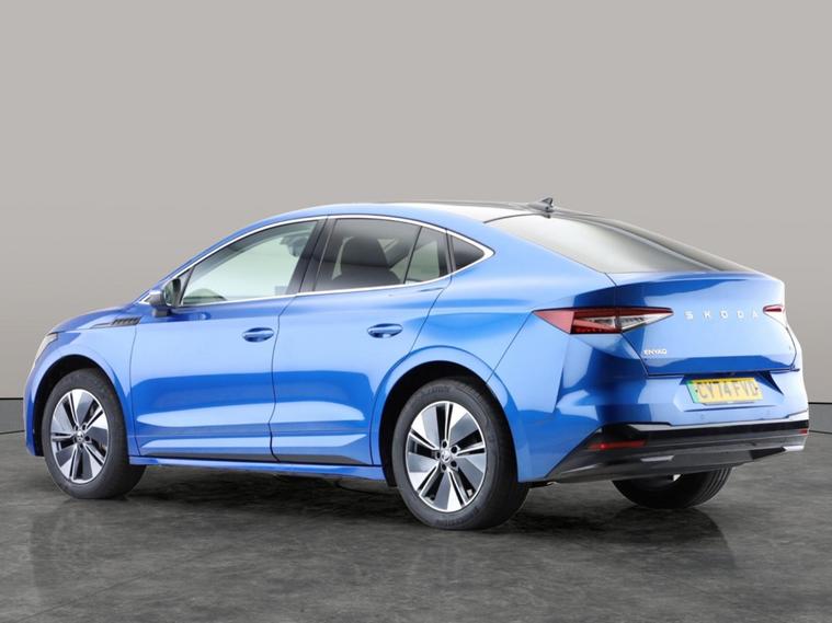 Experience electric driving with this stylish blue Skoda Enyaq Coupe. Enjoy panoramic views through the expansive sunroof while relaxing in heated, fully electric memory seats. Stay connected with Apple CarPlay and a wireless charger, and drive confidently with Adaptive Cruise Control, Blind Spot Assist, and a reversing camera. Effortless keyless entry adds convenience, and built-in sat nav ensures youll always find your way. Discover comfort, technology, and space in this impressive Skoda Enyaq. MOT to 15/01/2028. Visit our website for service history, online valuation, full vehicle specification plus multiple images. This vehicle is VAT qualifying. Any feature/option specified here is from 3rd party data. We cannot guarantee the accuracy of any specification supplied by a 3rd party. We recommend that you physically check the specification of the vehicle on site prior to purchase. This information does not form part of the buying contract. Terms & Conditions apply. We have over 2, 000 cars available from our 10 national branches, check our website to see all our stock. Our Trustpilot rating is 4.4/5 with over 9, 000 reviews.