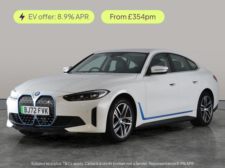 Experience the future with this BMW i4 Gran Coupe. Standout features include luxurious Cloth-Sensatec black interior, stylish aluminium exterior trim, and sleek aluminium mesh-effect interior touches. Enjoy seamless journeys with adaptive cruise control, park assist, keyless entry, and a reversing camera. Stay connected via Apple CarPlay, BMW Connected Package Professional, and Sat Nav. Appreciate comfort with heated seats and LED headlights for dynamic visibility. All wrapped up in a striking white finishan electric drive that's as smart as it is stylish. 2 services recorded, last serviced on 28/11/2025 at 41, 168 miles. MOT to 08/10/2026. Visit our website for service history, online valuation, full vehicle specification plus multiple images. Certain features listed may be available via subscription packages at extra costs, please consult with BMW for details. This vehicle is VAT qualifying. Any feature/option specified here is from 3rd party data. We cannot guarantee the accuracy of any specification supplied by a 3rd party. We recommend that you physically check the specification of the vehicle on site prior to purchase. This information does not form part of the buying contract. Terms & Conditions apply. We have over 2, 000 cars available from our 10 national branches, check our website to see all our stock. Our Trustpilot rating is 4.4/5 with over 9, 000 reviews.