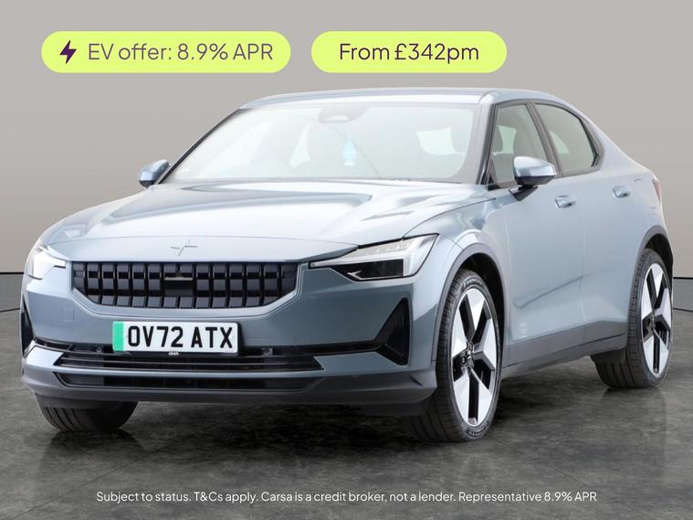 Discover the Polestar 2 a stylish grey fastback thats packed with smart features. Enjoy seamless Apple CarPlay, effortless keyless entry and start, and a reversing camera for stress-free parking. Stay comfortable with heated seats and dual zone digital climate control, while adaptive LED headlights light your way. Safety is enhanced with a lane departure warning system and cruise control. This electric automatic brings a premium drive and a host of modern tech for every journey. Charging leads included. MOT to 11/09/2026. Visit our website for service history, online valuation, full vehicle specification plus multiple images. This vehicle is VAT qualifying. Any feature/option specified here is from 3rd party data. We cannot guarantee the accuracy of any specification supplied by a 3rd party. We recommend that you physically check the specification of the vehicle on site prior to purchase. This information does not form part of the buying contract. Terms & Conditions apply. We have over 2, 000 cars available from our 10 national branches, check our website to see all our stock. Our Trustpilot rating is 4.4/5 with over 9, 000 reviews.