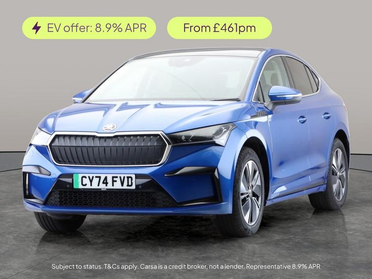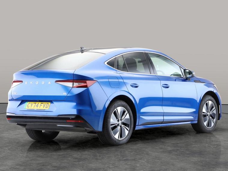 Experience electric driving with this stylish blue Skoda Enyaq Coupe. Enjoy panoramic views through the expansive sunroof while relaxing in heated, fully electric memory seats. Stay connected with Apple CarPlay and a wireless charger, and drive confidently with Adaptive Cruise Control, Blind Spot Assist, and a reversing camera. Effortless keyless entry adds convenience, and built-in sat nav ensures youll always find your way. Discover comfort, technology, and space in this impressive Skoda Enyaq. MOT to 15/01/2028. Visit our website for service history, online valuation, full vehicle specification plus multiple images. This vehicle is VAT qualifying. Any feature/option specified here is from 3rd party data. We cannot guarantee the accuracy of any specification supplied by a 3rd party. We recommend that you physically check the specification of the vehicle on site prior to purchase. This information does not form part of the buying contract. Terms & Conditions apply. We have over 2, 000 cars available from our 10 national branches, check our website to see all our stock. Our Trustpilot rating is 4.4/5 with over 9, 000 reviews.