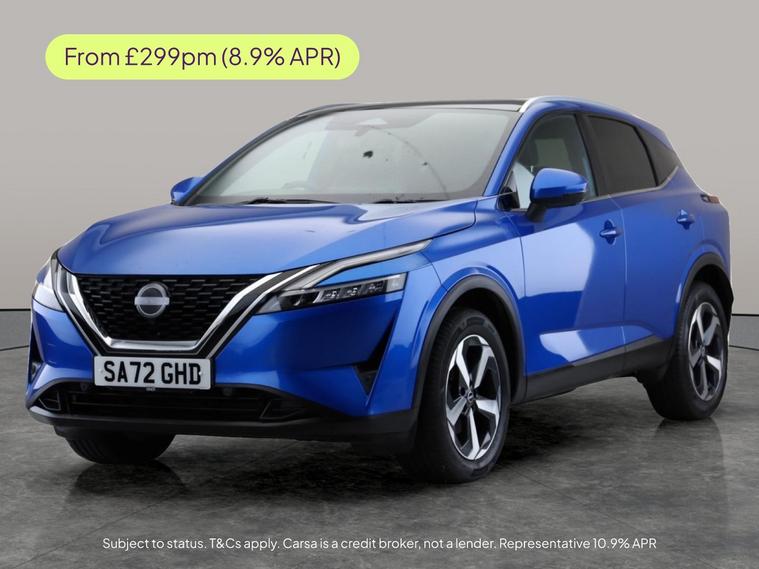 Experience the Nissan Qashqai in striking blue, packed with premium features for ultimate comfort and confidence. Enjoy the luxury of a glass roof, heated seats, and a heated steering wheel. Stay connected with Apple CarPlay and let the advanced head-up display keep key info in your view. The surround view system, 360-degree camera, reversing camera, and LED headlights offer unbeatable visibility and ease of parking. Intelligent safety systems include blind spot assist, lane intervention, and departure warning. All this, plus seamless hybrid automatic performance. 1 service recorded, last serviced on 17/10/2025 at 17, 381 miles. MOT to 25/09/2026. Visit our website for service history, online valuation, full vehicle specification plus multiple images. Any feature/option specified here is from 3rd party data. We cannot guarantee the accuracy of any specification supplied by a 3rd party. We recommend that you physically check the specification of the vehicle on site prior to purchase. This information does not form part of the buying contract. Terms & Conditions apply. We have over 2, 000 cars available from our 10 national branches, check our website to see all our stock. Our Trustpilot rating is 4.4/5 with over 9, 000 reviews.