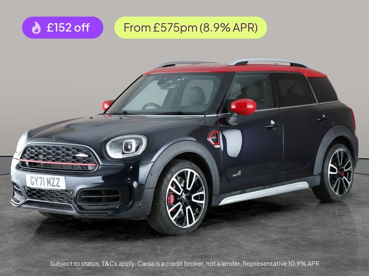 Experience driving excitement in this Mini Countryman John Cooper Works, featuring a stunning panoramic roof and stylish 19in John Cooper Works Circuit Spoke wheels. Enjoy the premium MINI Yours Lounge leather in Carbon Black, rear privacy glass for added sophistication, and the convenience of a powered tailgate and heated front windscreen. With LED headlights, Apple CarPlay, keyless entry, a reversing camera, sat nav, and premium packs, this sporty black SUV blends fun, technology, and comfort in one irresistible package. 3 services recorded, last serviced on 28/11/2025 at 8, 837 miles. MOT to 29/11/2026. Visit our website for service history, online valuation, full vehicle specification plus multiple images. Any feature/option specified here is from 3rd party data. We cannot guarantee the accuracy of any specification supplied by a 3rd party. We recommend that you physically check the specification of the vehicle on site prior to purchase. This information does not form part of the buying contract. Terms & Conditions apply. We have over 2, 000 cars available from our 10 national branches, check our website to see all our stock. Our Trustpilot rating is 4.4/5 with over 9, 000 reviews.
