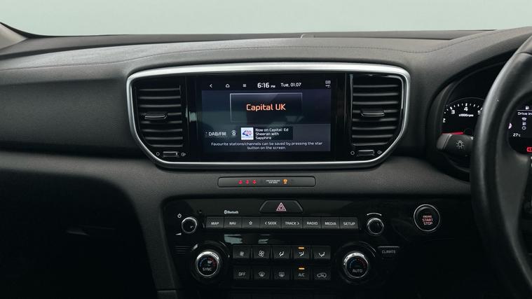 Experience the Kia Sportage, finished in sophisticated grey and packed with standout features. Enjoy the airy feel of a panoramic sunroof, stay safe with Blind Spot Assist and Lane Departure Warning, and park effortlessly using the reversing camera. The 19in alloy wheels add a sporty touch, while LED daytime running lights ensure you're always seen. Comfort comes first with a heated steering wheel, air conditioning, cruise control, sat nav, and Bluetooth connectivity for all your journeys. Test drive your next adventure today! 5 services recorded, last serviced on 11/02/2025 at 21, 948 miles. MOT to 17/10/2026. Visit our website for service history, online valuation, full vehicle specification plus multiple images. Any feature/option specified here is from 3rd party data. We cannot guarantee the accuracy of any specification supplied by a 3rd party. We recommend that you physically check the specification of the vehicle on site prior to purchase. This information does not form part of the buying contract. Terms & Conditions apply. We have over 2, 000 cars available from our 10 national branches, check our website to see all our stock. Our Trustpilot rating is 4.4/5 with over 9, 000 reviews.