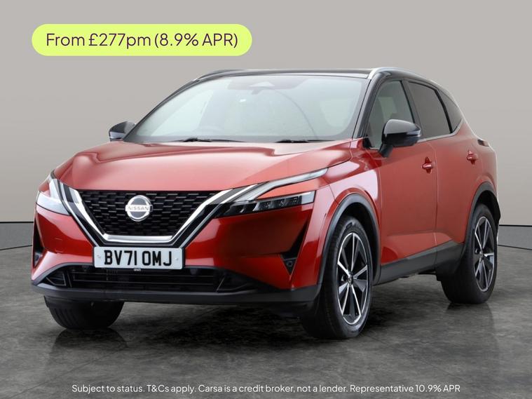 Experience the stylish Nissan Qashqai in striking red with premium features to enhance every journey. Enjoy the Head-Up Display, Apple CarPlay, and a superb surround view with the 360-degree camera and Around View Monitor. Luxuriate with heated seats, a heated steering wheel, and a sleek glass roof. Navigate with ease using the Sat Nav, while LED headlights and advanced driver aids like Blind Spot Assist and Intelligent Lane Intervention keep you confident and comfortable on every drive. 1 service recorded, last serviced on 12/07/2025 at 37, 939 miles. MOT to 19/05/2026. Visit our website for service history, online valuation, full vehicle specification plus multiple images. Any feature/option specified here is from 3rd party data. We cannot guarantee the accuracy of any specification supplied by a 3rd party. We recommend that you physically check the specification of the vehicle on site prior to purchase. This information does not form part of the buying contract. Terms & Conditions apply. We have over 2, 000 cars available from our 10 national branches, check our website to see all our stock. Our Trustpilot rating is 4.4/5 with over 9, 000 reviews.