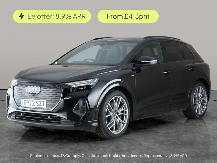 Experience the future of driving with this sleek black Audi Q4 E-tron. Enjoy the luxury of heated leather S-Line front sport seats with driver memory and electric adjustment, paired with the sophisticated Black Styling Package. Stay entertained with an upgraded sound system and seamless Apple CarPlay, while MMI Navigation Plus ensures youre always on course. Adaptive cruise control, active lane assist, and a reversing camera make every journey effortless, all illuminated by striking LED headlights. Your next adventure awaits. 1 service recorded, last serviced on 14/11/2024 at 14, 600 miles. MOT to 23/11/2026. Visit our website for service history, online valuation, full vehicle specification plus multiple images. Certain features listed may be available via subscription packages at extra costs, please consult with Audi for details. This vehicle is VAT qualifying. Any feature/option specified here is from 3rd party data. We cannot guarantee the accuracy of any specification supplied by a 3rd party. We recommend that you physically check the specification of the vehicle on site prior to purchase. This information does not form part of the buying contract. Terms & Conditions apply. We have over 2, 000 cars available from our 10 national branches, check our website to see all our stock. Our Trustpilot rating is 4.4/5 with over 9, 000 reviews.