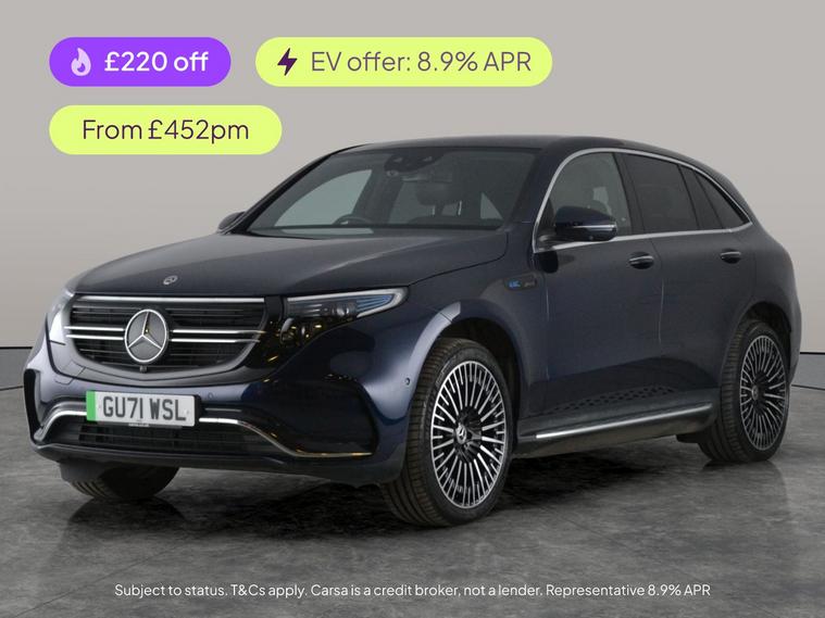 Experience electric luxury with this stunning blue Mercedes-Benz EQC SUV. Enjoy top-tier optional features including a Head-Up Display, sunroof, surround view with a 360-degree camera, and keyless entry for effortless access. Travel in comfort thanks to heated leather seats, a memory package, and the comfort pack. Stay safe with Blind Spot Assist and Lane Departure Warning, and enjoy advanced tech like LED headlights, satellite navigation, and the mirror package. Pure comfort, style, and innovation in one electric SUV. 4 services recorded, last serviced on 02/12/2025 at 51, 512 miles. MOT to 22/08/2026. Visit our website for service history, online valuation, full vehicle specification plus multiple images. This vehicle is VAT qualifying. Any feature/option specified here is from 3rd party data. We cannot guarantee the accuracy of any specification supplied by a 3rd party. We recommend that you physically check the specification of the vehicle on site prior to purchase. This information does not form part of the buying contract. Terms & Conditions apply. We have over 2, 000 cars available from our 10 national branches, check our website to see all our stock. Our Trustpilot rating is 4.4/5 with over 9, 000 reviews.