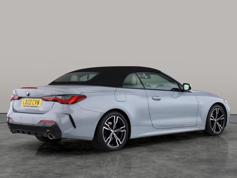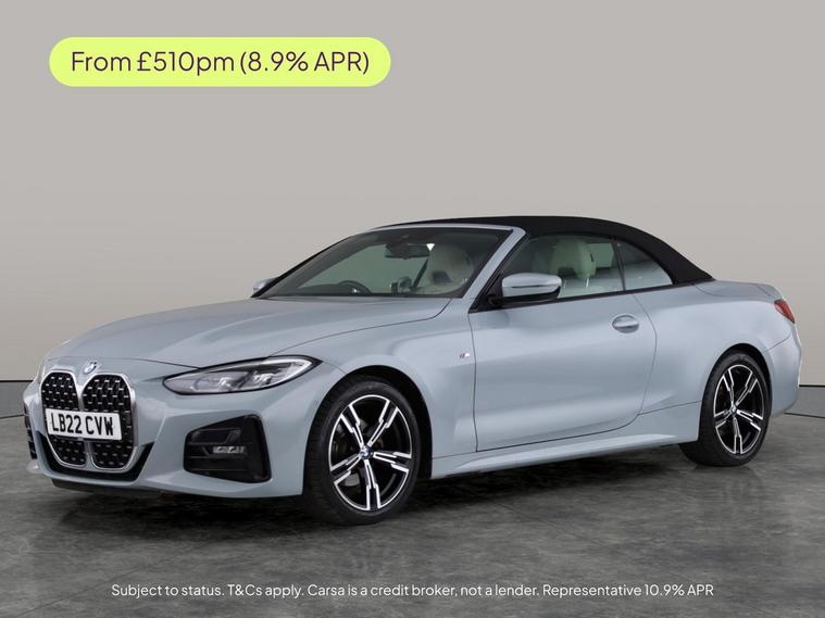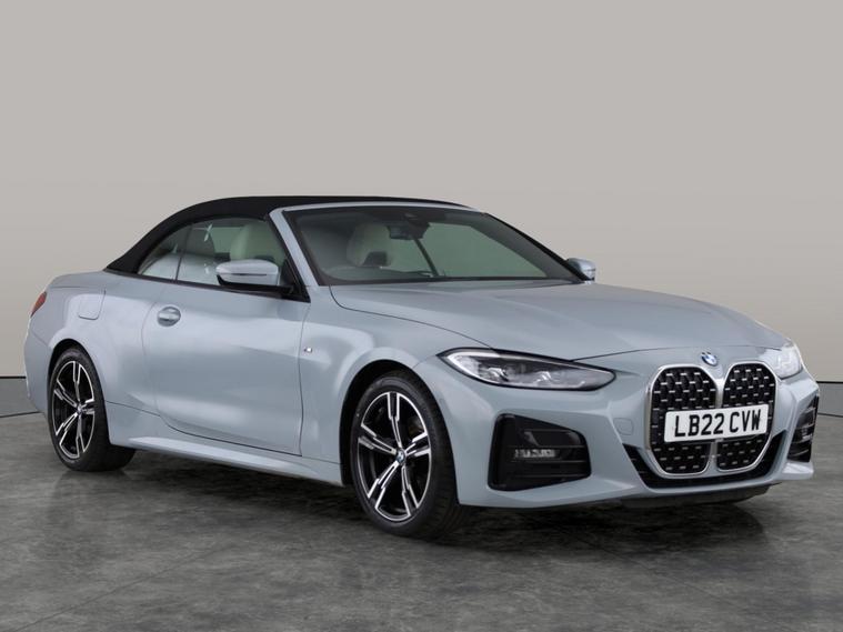 Experience open-top luxury with this stunning grey BMW 4 Series Convertible. Enjoy your favourite tunes with the upgraded Harman/Kardon sound system, stay cosy with a heated steering wheel and warm air collar, and drive in comfort with the Comfort Pack and wind deflector. Vernasca leather seats, heated front seats, and electric seat adjustment with memory add a touch of sophistication. Benefit from easy parking thanks to Park Assist and brilliant LED headlights for clear night driving. A perfect blend of performance and style awaits. 2 services recorded, last serviced on 30/08/2025 at 17, 837 miles. MOT to 27/08/2026. Visit our website for service history, online valuation, full vehicle specification plus multiple images. Certain features listed may be available via subscription packages at extra costs, please consult with BMW for details. Any feature/option specified here is from 3rd party data. We cannot guarantee the accuracy of any specification supplied by a 3rd party. We recommend that you physically check the specification of the vehicle on site prior to purchase. This information does not form part of the buying contract. Terms & Conditions apply. We have over 2, 000 cars available from our 10 national branches, check our website to see all our stock. Our Trustpilot rating is 4.4/5 with over 9, 000 reviews.
