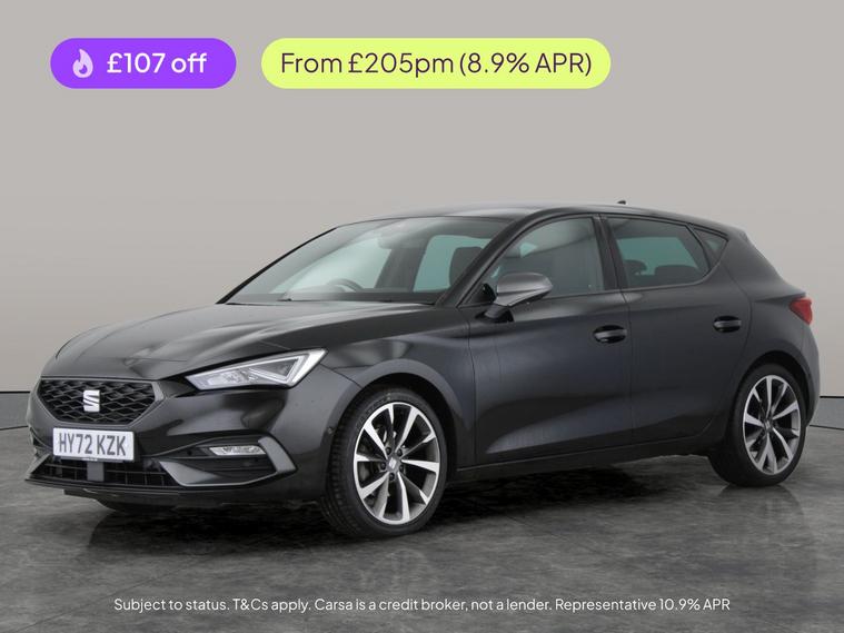 Experience driving in style with this dynamic black Seat Leon FR Sport. Enjoy ultimate comfort with heated seats, and convenience from keyless start and Park Assist. Stay connected on the go with Apple CarPlay and find your way easily using Sat Nav. LED headlights ensure excellent visibility, while front and rear parking sensors make manoeuvring a breeze. With dual climate control and cruise control, every journey is enjoyable in this impressive hatchback. 1 service recorded, last serviced on 28/11/2025 at 22, 919 miles. MOT to 09/11/2026. Visit our website for service history, online valuation, full vehicle specification plus multiple images. This vehicle is VAT qualifying. Any feature/option specified here is from 3rd party data. We cannot guarantee the accuracy of any specification supplied by a 3rd party. We recommend that you physically check the specification of the vehicle on site prior to purchase. This information does not form part of the buying contract. Terms & Conditions apply. We have over 2, 000 cars available from our 10 national branches, check our website to see all our stock. Our Trustpilot rating is 4.4/5 with over 9, 000 reviews.
