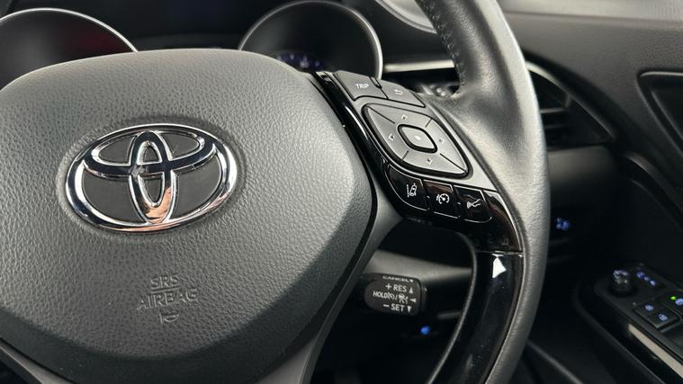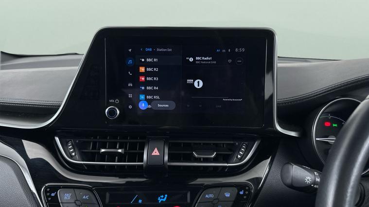 Experience the sleek black Toyota C-HR Hybrid, offering impressive tech like adaptive cruise control, heated seats, and a crystal-clear reversing camera. Navigate with ease using the sat nav, stay connected via Bluetooth, and drive in style with LED headlights and striking LED daytime running lights. Enjoy the smooth automatic transmission and the comfort of air conditioning on every journey. This standout SUV blends sharp design with advanced featuresdiscover your perfect driving companion today. 1 service recorded, last serviced on 10/06/2025 at 28, 085 miles. MOT to 02/06/2026. Visit our website for service history, online valuation, full vehicle specification plus multiple images. This vehicle is VAT qualifying. Any feature/option specified here is from 3rd party data. We cannot guarantee the accuracy of any specification supplied by a 3rd party. We recommend that you physically check the specification of the vehicle on site prior to purchase. This information does not form part of the buying contract. Terms & Conditions apply. We have over 2, 000 cars available from our 10 national branches, check our website to see all our stock. Our Trustpilot rating is 4.4/5 with over 9, 000 reviews.